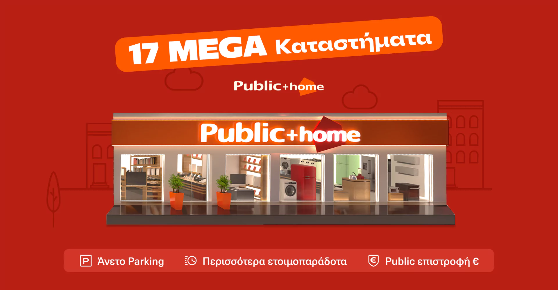 Επισκέψου ένα από τα 17 Public + home καταστήματά μας βρες μεγάλη ποικιλία ετοιμοπαράδοτων προϊόντων που καλύπτουν όλη την οικογένεια! Απόκτησε ό,τι χρειάζεσαι τώρα, χωρίς να περιμένεις. Έλα σε ένα κατάστημα και πάρε ετοιμοπαράδοτα προϊόντα ανά πάσα στιγμή.