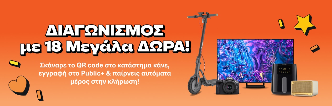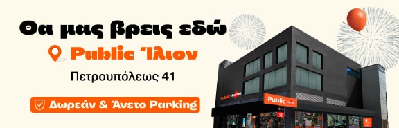 *Ισχύει για το κατάστημα Public + Home Ίλιον από 30/01 έως 01/02. Το όφελος 50% αφορά το προϊόν χαμηλότερης αξίας. Εξαιρούνται τα προϊόντα Apple, Dyson, PS5 κονσόλες, prepaid cards, η σειρά smartphone Samsung Galaxy S25 & τα ξενόγλωσσα φροντιστηριακά βιβλία. Ισχύουν Όροι & Προϋποθέσεις.