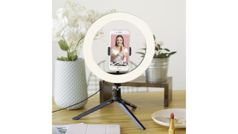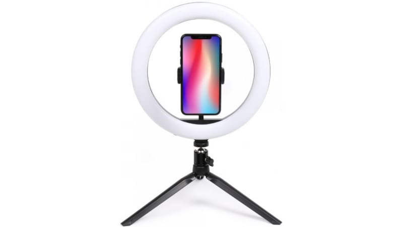 Φωτογραφικό φωτιστικό δαχτυλίδι Livoo Selfie Ring Light διαμέτρου 25,5cm με 120 λαμπτήρες LED που λειτουργούν σε 20 W και τρίποδο.