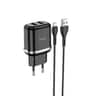 Φορτιστής Ταξιδίου Hoco N4 Aspiring Με 2 Εξόδους Φόρτισης Usb 5v 2.4a Μαύρος Με Καλώδιο Micro Usb 1μ