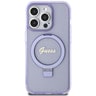 Θήκη Apple iPhone 15 Pro - Guess Magsafe Ring Stand Glitter Hard Case Script Logo - Διάφανο/Μωβ