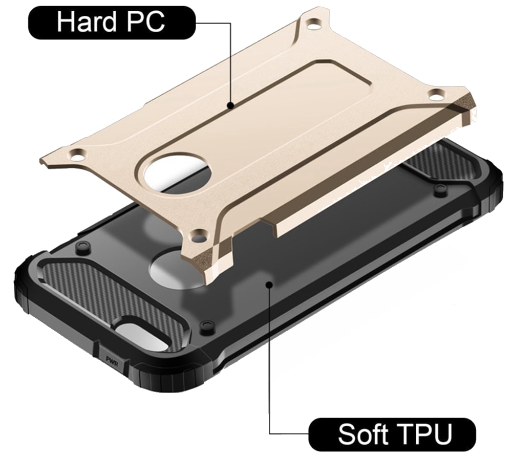 Η κατασκευή της εσωτερικά από σιλικόνη (ΤPU) την κάνει εύκαμπτη επιτρέποντας τη συχνή τοποθέτηση κι αφαίρεση της, σε αντίθεση με μια πλαστική που μπορεί να φθαρεί. Οι πλευρές είναι επίσης από σιλικόνη, ενώ η εξωτερική πίσω όψη είναι κατασκευασμένη από PC (σκληρό πλαστικό), προστατεύοντας τη συσκευής σου από πτώσεις και χτυπήματα. Οι ενισχυμένες γωνίες απορροφούν τους κραδασμούς και το υπερυψωμένο χείλος σε οθόνη και κάμερα αποτρέπει τις γρατζουνιές. Τέλος, οι ειδικές εγκοπές για κουμπιά, φορτιστή, ακουστικά και κάμερα σου επιτρέπουν τη χρήση της συσκευής, χωρίς να απαιτείται η αφαίρεση της.