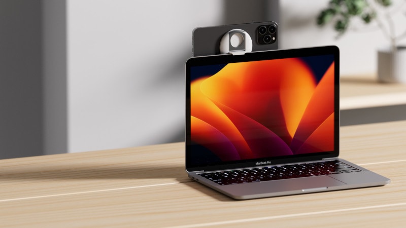 Απλώς τοποθέτησε το συμβατό με MagSafe iPhone σου (iPhone 12 και μεταγενέστερες εκδόσεις) πάνω στην πανίσχυρη μαγνητική βάση και ξεκίνησε να συνομιλείς ή να κάνεις streaming χωρίς να χρειάζεται να χρησιμοποιείς τα χέρια σου (hands-free). Είναι ένας εύκολος τρόπος να συνδυάσεις το iPhone και το Mac Notebook σου ώστε να βελτιώσεις την εμπειρία των βιντεοκλήσεων.