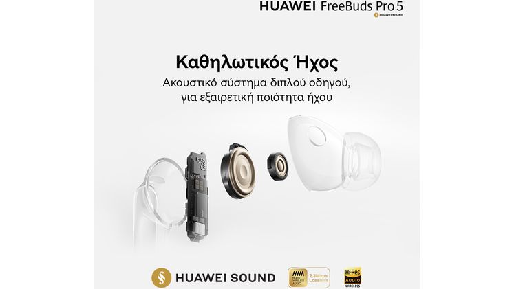 Τα HUAWEI FreeBuds Pro 5 προσφέρουν μια απαράμιλλη ακουστική εμπειρία. Με το πρωτοποριακό σύστημα Dual-Engine AI Ακύρωση Θορύβου και το Ακουστικό Σύστημα Διπλού Οδηγού, απολαμβάνεις καθηλωτικό ήχο χωρίς απώλειες μέσω L2HC 4.0 (2.3 Mbps).