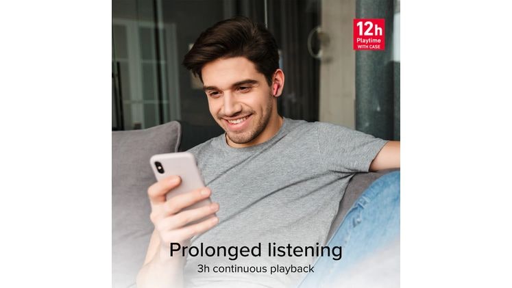 Απόλαυσε έως και 3 ώρες συνεχούς αναπαραγωγής μουσικής με μία φόρτιση των Go Pods TWS. Η συμπαγής θήκη φόρτισης 200mAh δεν προστατεύει μόνο τα ακουστικά σου, αλλά επεκτείνει τη συνολική αυτονομία έως τις 12 ώρες, επιτρέποντας πολλαπλές επαναφορτίσεις εν κινήσει χωρίς επιπλέον πηγή ενέργειας. Όταν η θήκη χρειαστεί φόρτιση, τη συνδέεις εύκολα με ένα φορτιστή ή power bank.