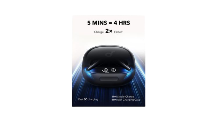 Χρόνος αναπαραγωγής έως 10 ώρες (χωρίς ANC) ή 7.5 ώρες (με ANC), έως 40 ώρες με τη θήκη φόρτισης, Υποστήριξη χωρικού ήχου με παρακολούθηση κίνησης κεφαλιού, Οθόνη στη θήκη για εμφάνιση επιπέδου μπαταρίας και ρυθμίσεις