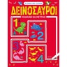 Τα μικρά παιδιά ακολουθούν με τον μαρκαδόρο τις λευκές γραμμές στις πολύχρωμες εικόνες από τον κόσμο των δεινόσαυρων.