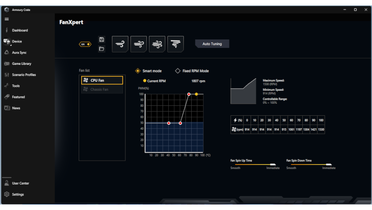 Οι μητρικές κάρτες της σειράς Prime 600 προσφέρουν ολοκληρωμένο έλεγχο των ανεμιστήρων του συστήματος, μέσω του λογισμικού Fan Xpert που περιλαμβάνεται. Ρύθμισε αυτόματα τους ανεμιστήρες για βέλτιστη ροή αέρα με ένα μόνο κλικ.