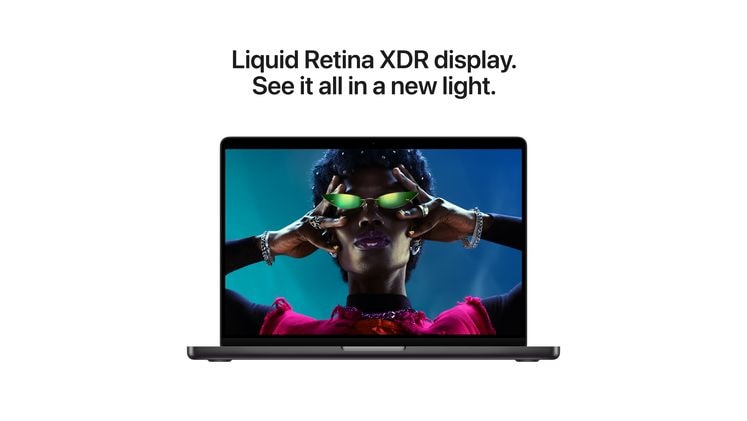 Η οθόνη Liquid Retina XDR 14.2 ιντσών διαθέτει μέγιστη φωτεινότητα 1600 nits5 και συνεχή φωτεινότητα έως 1000 nits με αντίθεση 1.000.000:1. Επιπλέον, διατίθεται με επιλογή οθόνης nano-texture που μειώνει την ανακλασιμότητα και την αντανάκλαση.