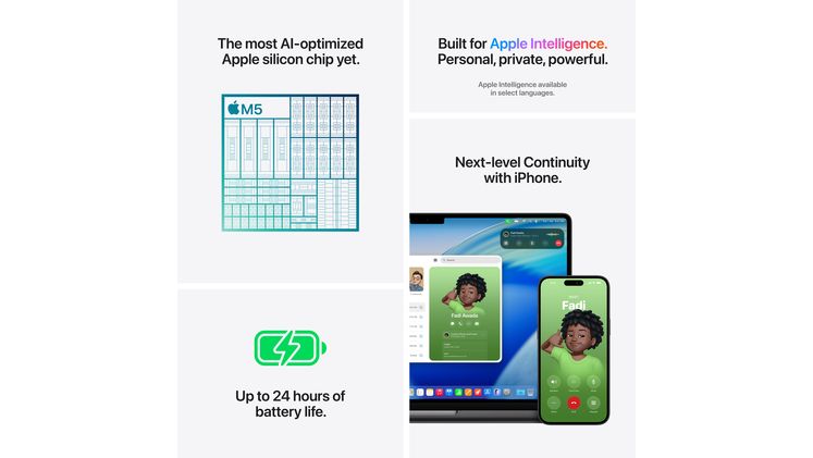 Εκτός από την ταχύτερη CPU και ενοποιημένη μνήμη, το M5 διαθέτει μια ακόμα πιο ισχυρή GPU με έναν Neural Accelerator σε κάθε πυρήνα, προσφέροντας ταχύτερες επιδόσεις AI. Για να μπορείς να διεκπεραιώνεις απαιτητικές ροές εργασίας με αδιανόητη ταχύτητα.