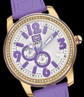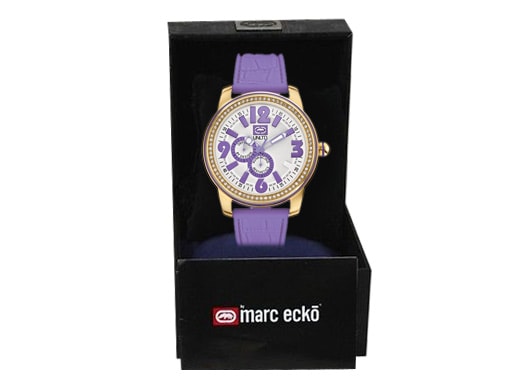 H απόλυτη έκφραση της νεανικής κουλτούρας και του street fashion είναι η πρόταση του πρωτοποριακού σχεδιαστή Marc Ecko και στα ρολόγια! Το ρολόι έχει ατσάλινο καντράν σε χρυσό χρώμα, με μωβ αριθμούς και ζιργκόν στην στεφάνη. Διαθέτει δείκτες ώρας, λεπτών, δευτερολέπτων, καουτσούκ λουράκι με κούμπωμα τοκάς. Είναι αδιάβροχο μέχρι 5 Atm, αντέχει σε επαφή με το νερό, είναι ικανό για κολύμπι αλλά ακατάλληλο για κατάδυση.