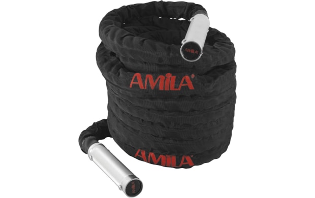 Σχοινί Crossfit Amila Battle Rope 9m με Χερούλια Αλουμινίου - Μαύρο
