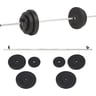 Αυτό το ευέλικτο σετ μπάρας είναι ιδανικό για να γυμνάζετε το στήθος, τους δικέφαλους, τα χέρια, τους τρικέφαλους και τους ραχιαίους μύες. Περιλαμβάνει δύο δίσκους 7,5 κ., δύο δίσκους 5 κ., δύο δίσκους 1,25 κ. και μία μπάρα 2 κ. και έχει συνολικό βάρος 30 κ. κατά προσέγγιση. Αυτό το σετ χαρίζει τη δυνατότητα στους χρήστες να εναλλάσσουν τα βάρη που επιθυμούν να σηκώνουν σε διαφορετικές ασκήσεις. Οι δίσκοι είναι κατασκευασμένοι από τσιμέντο με πλαστικό περίβλημα και μπορούν εύκολα να στερεωθούν επάνω στη μπάρα και τις λαβές αλτήρων με τα περιλαμβανόμενα κολάρα (μανταλάκια). Το βάρος αναγράφεται με σαφήνεια επάνω σε κάθε δίσκο για γρήγορη και εύκολη αναγνώριση.