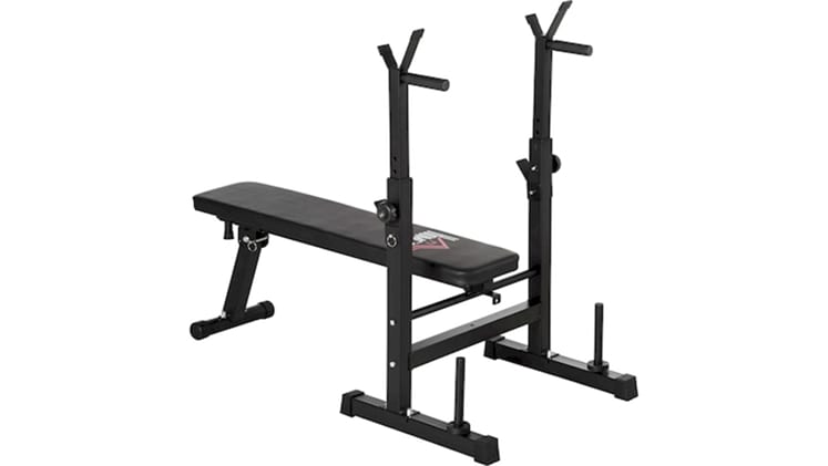 Ο πάγκος βαρών HOMCOM με ενσωματωμένη βάση για μπάρα είναι ιδανικός για πιέσεις πάγκου, push-ups, βυθίσεις και κωπηλατικές. Διαθέτει 8 ρυθμιζόμενες θέσεις για εξατομικευμένη προπόνηση. Ο μαλακός αφρώδης πάγκος με επένδυση PU προσφέρει άνεση, ενώ η αναδιπλούμενη κατασκευή εξοικονομεί χώρο. Οι αντιολισθητικές βάσεις προστατεύουν το δάπεδο. Κατασκευασμένος από ανθεκτικό ατσάλι, υποστηρίζει έως 150kg στον πάγκο και 100kg στη βάση μπάρας, εξασφαλίζοντας ασφάλεια και σταθερότητα στην προπόνηση.