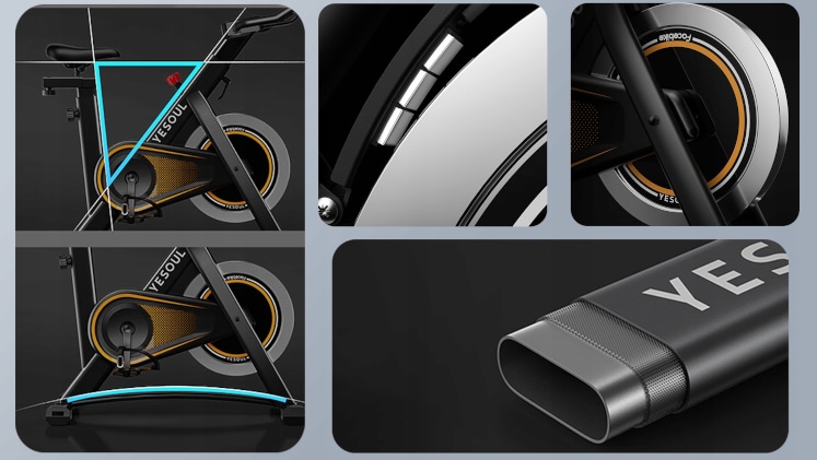 Το ποδήλατο γυμναστικής διαθέτει προσεγμένο μοντέρνο σχεδιασμό και στιβαρή κατασκευή βασισμένη σε τρίγωνο, με εντυπωσιακό βάρος 24 κιλών για αυξημένη σταθερότητα και αντοχή. Ο μπροστινός σφόνδυλος από υψηλής ποιότητας αλουμίνιο, με πάχος στεφάνης, προσφέρει ομαλή και ρεαλιστική αίσθηση, προσομοιάζοντας την εμπειρία ποδηλασίας αγώνων. Με βάρος 6 κιλών, διατηρεί την ταχύτητα για μεγαλύτερο διάστημα, εξασφαλίζοντας ομαλό πετάλι και ενισχύοντας την καύση θερμίδων μέσω αυξημένης αντίστασης. Το ανθεκτικό ατσάλινο πλαίσιο παρέχει εξαιρετική σταθερότητα και προστασία από μηχανικές βλάβες, εξασφαλίζοντας ασφάλεια κατά την άσκηση.