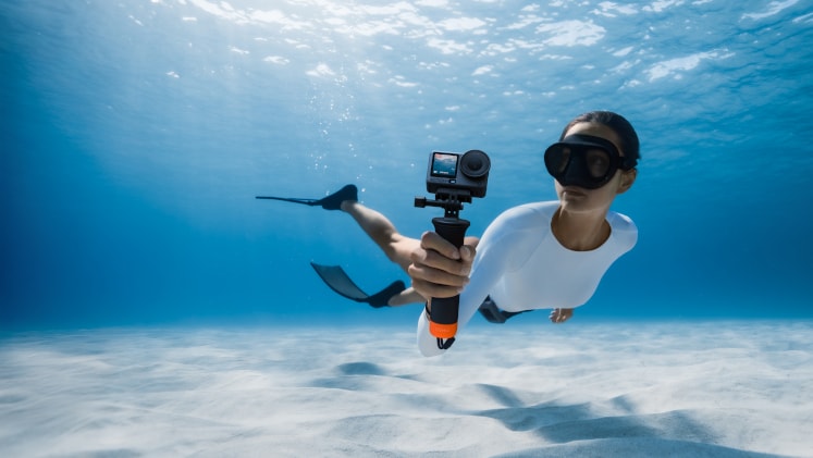 Αδιάβροχο έως 20 μέτρα χωρίς θήκη. Με τον ενσωματωμένο αισθητήρα θερμοκρασίας χρώματος και το μανόμετρο νερού, το Osmo Action 6 προσφέρει ρεαλιστικά υποβρύχια χρώματα και καταγράφει τα δεδομένα κατάδυσης.