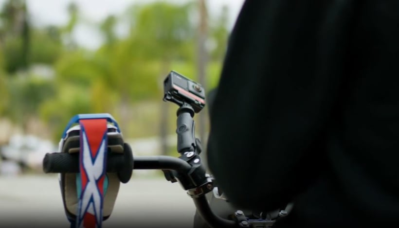 Η αυτοκόλλητη βάση με τις ράβδους επέκτασης επιτρέπει την στερεώση της κάμερα σε ένα κράνος, διευκολύνοντας τη λήψη της καθηλωτικής εικόνας κατά την οδήγηση.