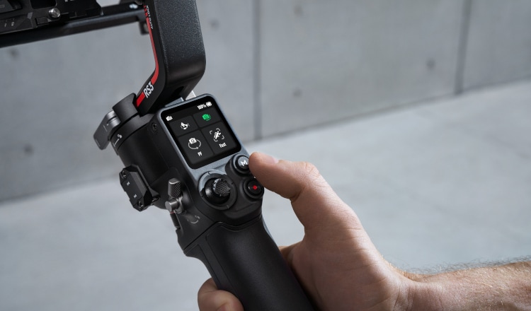 Το RS 3 είναι εξοπλισμένο με έγχρωμη οθόνη αφής OLED 1,8 ιντσών. Υποστηρίζει επίσης τις περισσότερες ρυθμίσεις εφαρμογής Ronin, παρέχοντας διαισθητικό και ακριβή έλεγχο μαζί με την επανασχεδιασμένη διεπαφή χρήστη. Επιπλέον, η περιστροφή του μπροστινού επιλογέα σου επιτρέπει να ελέγχεις το ζουμ ή την εστίαση. Μπορεί επίσης να προσαρμοστεί για να ελέγχει τις κινήσεις του κλείστρου, του διαφράγματος, του ISO, ή του gimbal της κάμερας, καθιστώντας την εξαιρετικά βολική για λειτουργία με το ένα χέρι.