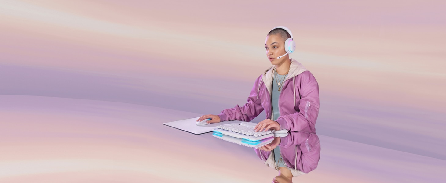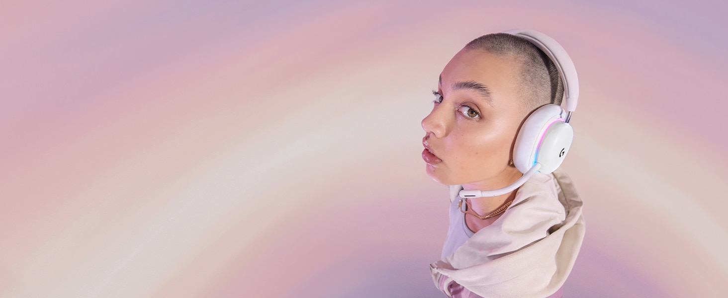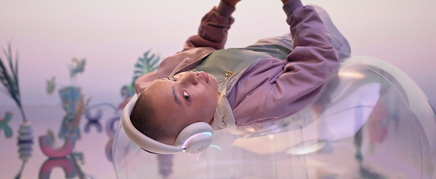 Απαλός, διπλής ζώνης φωτισμός LIGHTSYNC RGB με έτοιμες κινούμενες εικόνες Play Mood, δημιουργήστε το δικό σας μοναδικό στιλ στο Logitech G HUB, εξατομικεύοντας το σετ μικροφώνου-ακουστικών για gamer των RGB