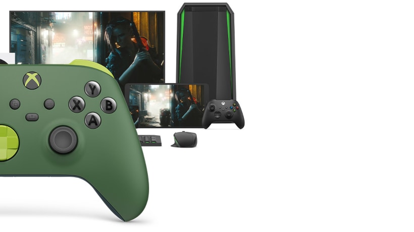 Περιλαμβάνει τεχνολογία ασύρματης και μέσω Bluetooth® σύνδεσης Xbox για ασύρματο παιχνίδι σε κονσόλα, PC , κινητά τηλέφωνα και tablet. Σύνδεσε οποιαδήποτε συμβατά ακουστικά στην υποδοχή στερεοφωνικών ακουστικών 3,5 mm.