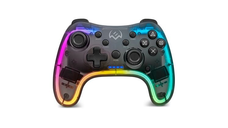 Σχεδιασμένο για ατελείωτες ώρες παιχνιδιού, το Sven GC-5050 διαθέτει εργονομική σχεδίαση που εφαρμόζει τέλεια στα χέρια σου. Τα 14 προγραμματιζόμενα κουμπιά, οι δύο αναλογικοί μοχλοί και το 8-κατευθυντήριο D-pad σου δίνουν απόλυτο έλεγχο. Απόλαυσε προσαρμόσιμη δόνηση που σε βυθίζει στην δράση, ενώ ο διαφανής σχεδιασμός με δυναμικό φωτισμό RGB προσθέτει εντυπωσιακή αισθητική. Περιλαμβάνεται βάση στήριξης smartphone για mobile gaming.
