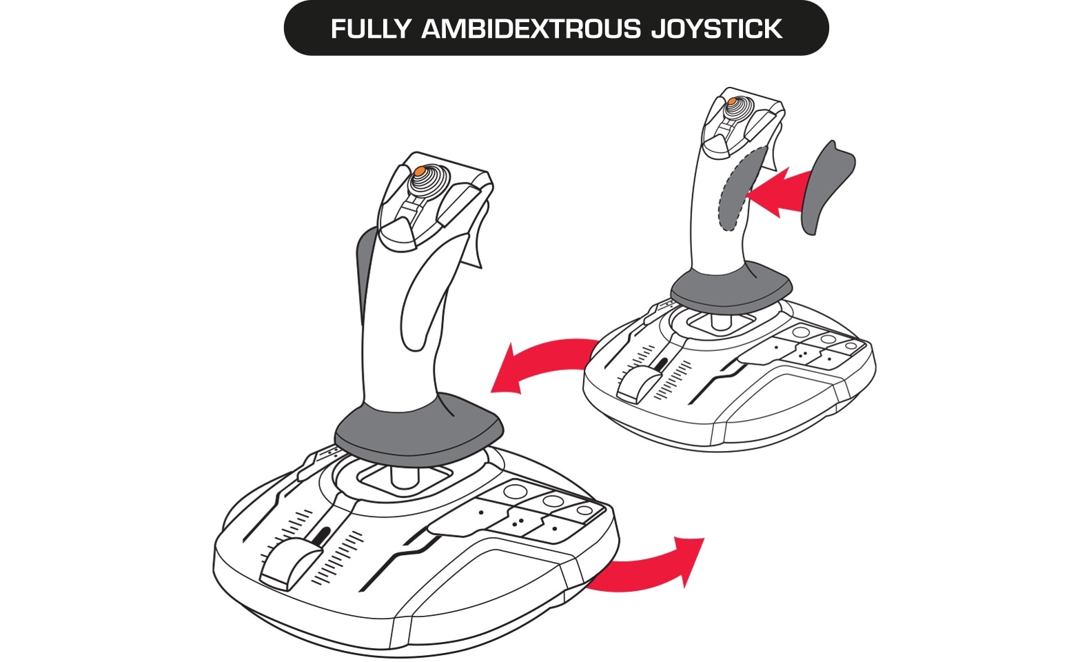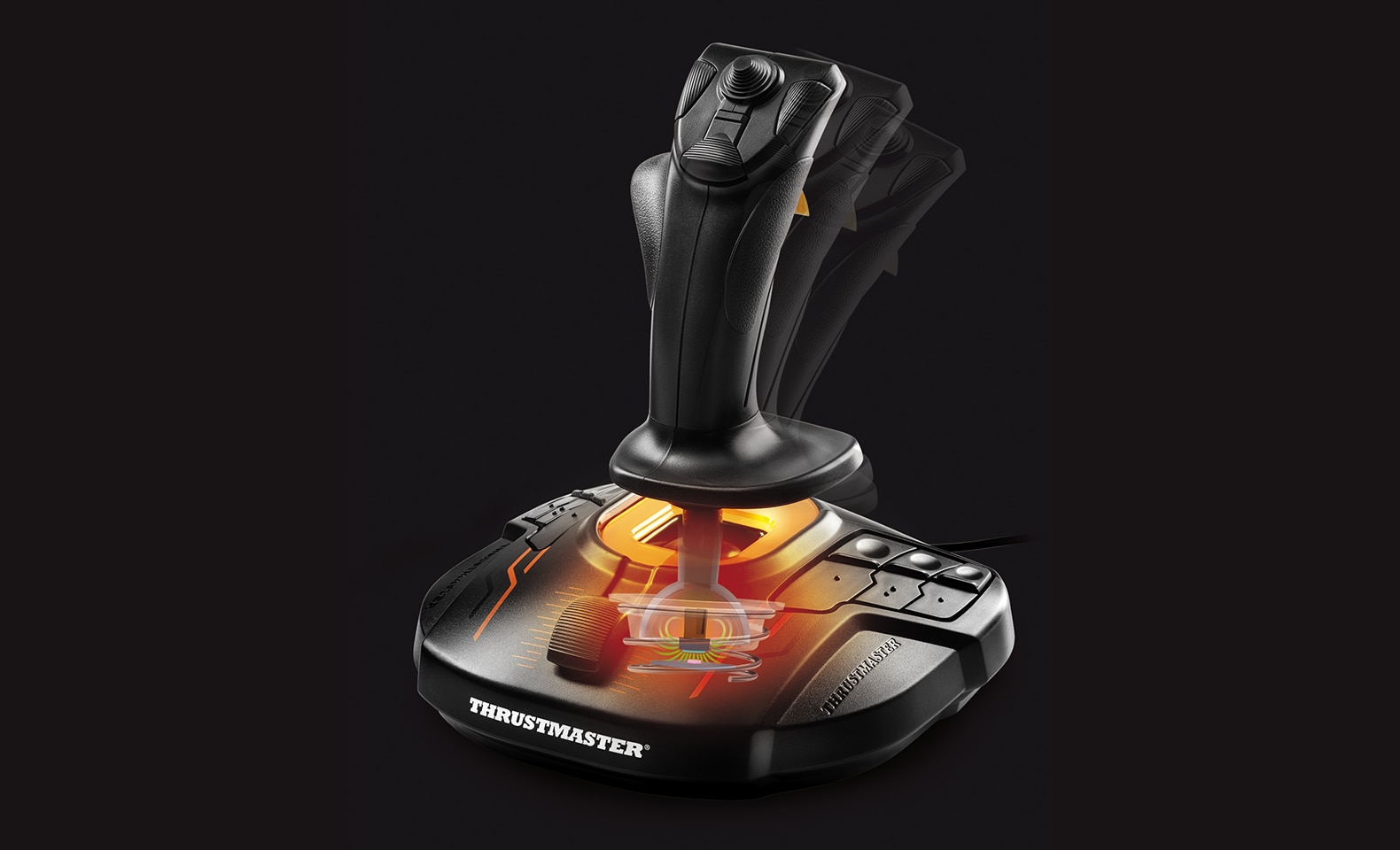 Το T.16000M FCS διαθέτει 4 ανεξάρτητους άξονες, συμπεριλαμβανομένου του twist rudder (ελικοειδές τιμόνι ελεγχόμενο από την περιστροφή του μοχλού), 16 κουμπιά ενεργειών με φυσική αναγνώριση κουμπιών σε στυλ "braille", ένα 8-κατευθυντικό κουμπί Point of View (PoV) και ένα εργονομικό κλείστρο. Τα εντυπωσιακά πορτοκαλί στοιχεία και ο φωτισμός προσδίδουν στους gamers μια ολοκληρωτικά νέα επίπεδο εμβύθισης.