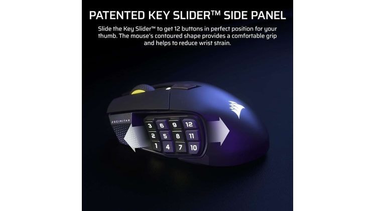 Το Corsair Scimitar Elite Wireless SE διαθέτει 16 πλήρως προγραμματιζόμενα κουμπιά, προσφέροντάς σου τον απόλυτο έλεγχο στα χέρια σου. Με τον πατενταρισμένο Key Slider™, μπορείς να μετακινήσεις τα 12 πλαϊνά κουμπιά στην ιδανική θέση για τον αντίχειρά σου, ώστε να έχεις άμεση πρόσβαση σε όλες τις λειτουργίες, τα cooldowns και τις επιθέσεις σου χωρίς προσπάθεια. Αυτή η ευελιξία σου επιτρέπει να προσαρμόσεις το ποντίκι στις ανάγκες κάθε παιχνιδιού, αυξάνοντας την αποτελεσματικότητα και την ταχύτητά σου σε κρίσιμες στιγμές.