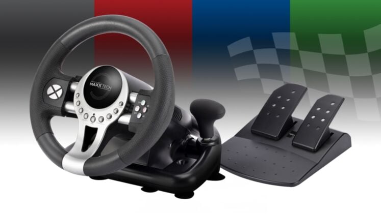 Maxx Tech Pro Racing Kit Τιμονιέρα με Πετάλια και Μοχλό Ταχυτήτων για PS5, PS4, Xbox, PC, Nintendo Switch