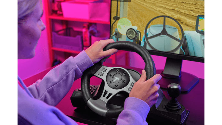 Προσφέροντας εύρος περιστροφής έως 270° και εικονική γωνία 900° (2,5 στροφές τροχών), αυτός ο τροχός είναι τέλειος για τα πάντα, από παιχνίδια αγώνων μέχρι προσομοιωτές φορτηγών, αγροκτημάτων και λεωφορείων. Έχει ακόμη και ανάδραση κραδασμών για την πιο συναρπαστική αγωνιστική εμπειρία σου μέχρι τώρα.