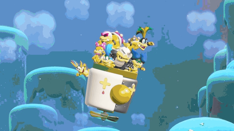 Αντιμετώπισε και τους επτά Koopalings σε ολοκαίνουργιες πίστες με boss μάχες, διάσπαρτες σε όλο το Βασίλειο των Λουλουδιών.