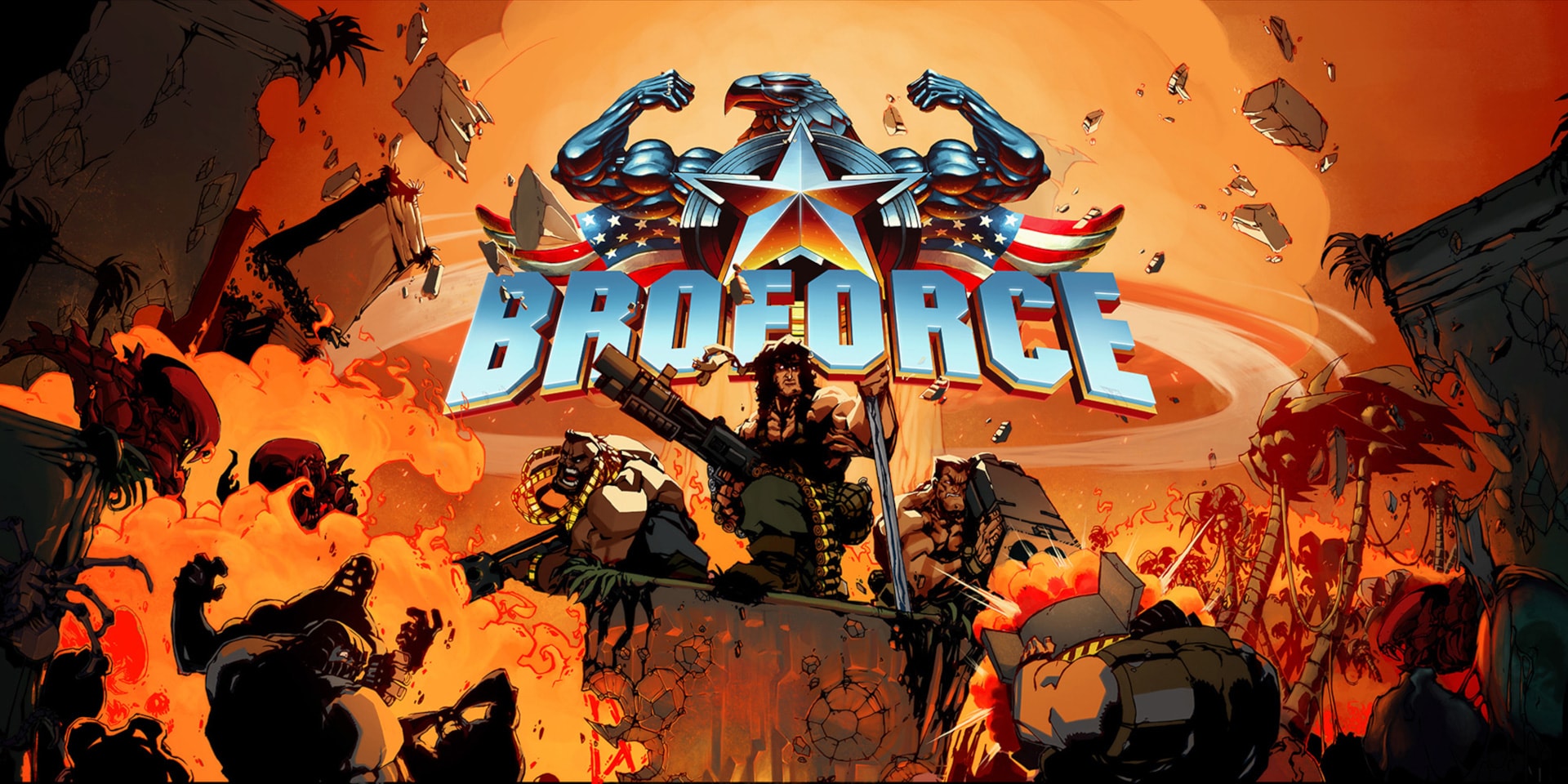Όταν το κακό απειλεί τον κόσμο, ο κόσμος καλεί την Broforce - μια υποχρηματοδοτούμενη, πανίσχυρη παραστρατιωτική οργάνωση που ασχολείται αποκλειστικά με την υπερβολική βία. Σφίξτε τους μύες σας με έως και τέσσερις παίκτες για να τρέξετε και να πυροβολήσετε ως δεκάδες διαφορετικοί Bros και να εξοντώσετε τις αντίπαλες τρομοκρατικές δυνάμεις που απειλούν τον τρόπο ζωής μας. Απελευθερώστε δεκάδες μοναδικά όπλα και πυροδοτήστε απίστευτες αλυσιδωτές αντιδράσεις φωτιάς, ναπάλμ και άκρων στο όνομα της ελευθερίας.