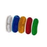 Η συσκευασία περιέχει 5 πολύχρωμα ανακλαστικά ποδηλάτου σε οβάλ σχήμα. Έχουν ειδικές εγκοπές ώστε να εφαρμόζουν ανάμεσα σε 2 ακτίνες της ρόδας. Μέγεθος : 6.5x2.5cm.