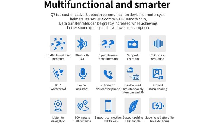 Αναβάθμισε την οδηγική σου εμπειρία με το σύστημα ενδοεπικοινωνίας EJEAS Q7. Σχεδιασμένο για αναβάτες που απαιτούν υψηλή απόδοση και αξιοπιστία, το Q7 προσφέρει κρυστάλλινη επικοινωνία και ψυχαγωγία εν κινήσει.