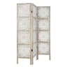 Το παραβάν είναι κατασκευασμένο από ξύλο MDF σε φυσική απόχρωση με λευκές λεπτομέρειες. Αποτελείται από 3 πάνελ με διάτρητο έθνικ σχέδιο, που επιτρέπει στο φως να περάσει ενώ παράλληλα διατηρεί την ιδιωτικότητα σου.