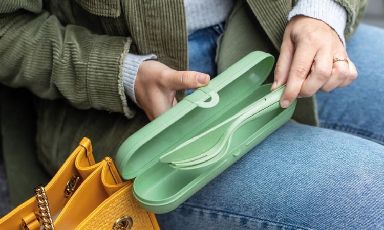 Το λεπτό κουτί έχει πρακτικό κλείσιμο με κλιπ και βρίσκει χώρο σε κάθε τσέπη ή τσάντα. Πλένεται στο πλυντήριο πιάτων και επομένως είναι ιδιαίτερα εύκολη στον καθαρισμό της. Η θήκη προστατεύει επίσης τα πιάτα από ζημιές και αποτρέπει την απώλεια τους κατά τη μεταφορά.