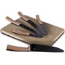 Μαχαίρι ψωμιού 20 cm, Μαχαίρι σεφ 20 cm, Μαχαίρι φιλεταρίσματος 20 cm, Μαχαίρι γενικής χρήσης 12.5 cm, Μαχαίρι ξεφλουδίσματος 9 cm, Επιφάνεια κοπής από μπαμπού