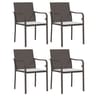 Καρέκλες κήπου από την εταιρεία VidaXL σε καφέ χρώμα για να απολαύσεις στιγμές χαλάρωσης. Το σετ περιλαμβάνει 4 καρέκλες από ρατάν πολυαιθυλενίου με σκελετό από χάλυβα και 4 υφασμάτινα μαξιλάρια με λευκό κρεμ χρώμα και γέμισμα από αφρώδη υλικά.
