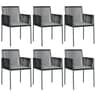 Καρέκλες κήπου σε μαύρο χρώμα για να απολαύσεις στιγμές χαλάρωσης. Το σετ περιλαμβάνει 6 καρέκλες από ρατάν πολυαιθυλενίου με σκελετό από ατσάλι με ηλεκτροστατική βαφή πούδρας και 6 υφασμάτινα μαξιλάρια από 100% πολυεστέρα με γκρι χρώμα. Διαθέτει μέγιστο βάρος αντοχής 110kg.