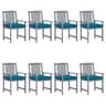 Καρέκλες Κήπου Vidaxl Πτυσσόμενες από Μπαμπού με Μαξιλάρια 2 Τεμ. 50x42x92cm - Γκρι/Μπλε