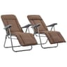 Αυτό το σετ από πτυσσόμενες καρέκλες κήπου θα αποτελέσει μια εξαιρετική επιλογή για να απολαμβάνετε τον ελεύθερο χρόνο σας στο ύπαιθρο. Είναι ιδανικό για το κάμπινγκ, το glamping ή απλά για να χαλαρώνετε στον κήπο. Η κάθε καρέκλα camping διαθέτει σκελετό από ατσάλι υψηλής ποιότητας, ο οποίος την καθιστά εξαιρετικά ανθεκτική και ισχυρή. Η καρέκλα 5 θέσεων διαθέτει μαξιλάρι με επένδυση από σφουγγάρι, το οποίο είναι πολύ αναπαυτικό. Χάρις στην πλάτη και το υποπόδιο με δυνατότητα ρύθμισης, καθώς και το προσκέφαλο με ενισχυμένο πάχος, μπορείτε να βρίσκετε πάντα την πιο αναπαυτική θέση για τον μεσημεριανό σας ύπνο. Αυτές οι ανακλινόμενες καρέκλες καθαρίζονται εύκολα. Οι ρυθμιζόμενες καρέκλες relax μπορούν να αναδιπλωθούν εύκολα και να αποθηκευτούν εξοικονομώντας χώρο. Στην παράδοση περιλαμβάνονται 2 καρέκλες κήπου με μαξιλάρια.
