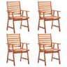 Το μοντέρνο σετ καρεκλών τραπεζαρίας μας, θα προσθέσει μια αίσθηση φυσικού στιλ στον κήπο, τη βεράντα ή το αίθριό σας. Αυτό το σετ από ξύλινες καρέκλες, θα αποτελέσει μια εξαιρετική επιλογή για φαγητό στο ύπαιθρο. Αυτές οι καρέκλες τραπεζαρίας είναι κατασκευασμένες από υψηλής ποιότητας ξύλο ακακίας, ένα τροπικό σκληρό ξύλο, το οποίο παρουσιάζει αντίσταση στις καιρικές συνθήκες και είναι ανθεκτικό για μακροχρόνια χρήση. Η επιφάνεια με φινίρισμα λαδιού, καθαρίζεται εύκολα με ένα νωπό πανί. Ο σχεδιασμός με σανίδες χαρίζει μία ρουστίκ πινελιά. Στην παράδοση περιλαμβάνονται 4 καρέκλες κήπου. Η συναρμολόγηση είναι εύκολη.