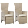 Οι κομψές ανακλινόμενες πολυθρόνες εξωτερικού χώρου θα μεταβληθούν στο επίκεντρο του κήπου ή της βεράντας σας! Αυτές οι καρέκλες τραπεζαρίας διαθέτουν κομψό και μοντέρνο σχέδιο, αποτελώντας εξαιρετική επιλογή για να γευματίζετε στο ύπαιθρο ή να χαλαρώνετε στον κήπο. Κατασκευασμένα από ρατάν πολυαιθυλενίου με αντίσταση στις καιρικές συνθήκες και το νερό, αυτά τα καθίσματα εξωτερικού χώρου δε φθείρονται, ενώ είναι εύκολα στο καθάρισμα και κατάλληλα για καθημερινή χρήση. Οι σκελετοί από ατσάλι με ηλεκτροστατική βαφή πούδρας εξασφαλίζουν υψηλή αντοχή και στιβαρότητα. Με τον ρυθμιζόμενο σχεδιασμό και τον μηχανισμό ανύψωσης με αέριο, η πλάτη και το υποπόδιο ρυθμίζονται στη θέση που επιθυμείτε. Χρησιμοποιώντας το κουμπί που βρίσκεται στο πλάι της καρέκλας, η πλάτη θα κινηθεί προς τα πίσω και το υποπόδιο θα ανυψωθεί ταυτόχρονα, για ακόμη περισσότερη άνεση. Χάρις στην ελαφριά κατασκευή τους, οι ανακλινόμενες καρέκλες κήπου μεταφέρονται εύκολα. Τα πλούσια, μαλακά, με επένδυση αφρώδους υλικού μαξιλάρια καθίσματος είναι ιδιαίτερα αναπαυτικά και κατασκευασμένα από υδατοαπωθητικό πολυεστέρα. Τα καλύμματα των μαξιλαριών διαθέτουν φερμουάρ, ενώ αφαιρούνται και πλένονται εύκολα. Σημείωση: Συνιστούμε να καλύπτετε το σετ κατά τη διάρκεια βροχής, χιονιού και παγετού.