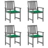Σετ Καρέκλες Κήπου VidaXL Μασίφ Ξύλο Ακακίας με Μαξιλάρια 4 τμχ - Γκρι/Πράσινο