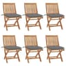 Vidaxl Καρέκλες Κήπου Πτυσσόμενες 6 Τεμ. Μασίφ Ξύλο Teak Με Μαξιλάρια