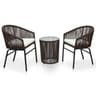 Χαρίστε μια συναρπαστική πινελιά στον εξωτερικό σας χώρο με το σετ επίπλων bistro 3 τεμαχίων. Είναι ιδανικό για χαλάρωση με έναν φίλο με ένα δροσερό ρόφημα και νόστιμα σνακ. Χάρις στην κατασκευή από PVC τύπου ρατάν, το οποίο είναι πλεγμένο πάνω από τον λουστραρισμένο ατσάλινο σκελετό, αυτό το σετ μπιστρό είναι σταθερό και ανθεκτικό σε δυσμενείς καιρικές συνθήκες και την υπεριώδη ακτινοβολία. Η επιφάνεια του τραπεζιού είναι εξοπλισμένη με διαφανές ψημένο γυαλί, ενώ καθαρίζεται εύκολα. Το βοηθητικό τραπέζι θα σας επιτρέπει να διατηρείτε σνακ, βιβλία και ποτά σε κοντινή απόσταση. Επιπλέον, περιλαμβάνονται μαξιλάρια για να προσφέρουν επιπρόσθετη άνεση και επιπλέον υποστήριξη όταν χαλαρώνετε. Στην παράδοση περιλαμβάνονται 2 καρέκλες και 1 βοηθητικό τραπέζι.