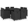 Το κομψό σετ επίπλων κήπου μας θα μεταβληθεί στο επίκεντρο του κήπου ή της βεράντας σας! Αυτό το σετ τραπεζαρίας, με κομψό σχεδιασμό, θα είναι μια εξαιρετική επιλογή για να γευματίζετε στο ύπαιθρο ή να χαλαρώνετε στον κήπο. Οι ατσάλινοι σκελετοί με ηλεκτροστατική βαφή πούδρας καθιστούν το τραπέζι και τα καθίσματα ισχυρά και στιβαρά και χάρις στην ελαφριά κατασκευή τους, όλα τα αντικείμενα μετακινούνται εύκολα. Χάρις στο ρατάν πολυαιθυλενίου με αντίσταση στις καιρικές συνθήκες και την επιφάνεια τραπεζιού με γυαλί χαραγμένο με οξύ, το σετ τραπεζαρίας είναι εύκολο στο καθάρισμα. Τα πλούσια, μαλακά και γεμισμένα με αφρώδες υλικό μαξιλάρια καθίσματος και πλάτης είναι πολύ άνετα και διαθέτουν κατασκευή από υδατοαπωθητικό πολυεστέρα. Τα αφαιρούμενα και πλενόμενα καλύμματα είναι εξοπλισμένα με φερμουάρ. Επιπλέον, μπορείτε να μετακινήσετε την πλάτη προς τα κάτω και να τοποθετήσετε τέσσερις καρέκλες κάτω από το τραπέζι, εξοικονομώντας πολύτιμο χώρο όταν το σετ επίπλων δε χρησιμοποιείται. Σημείωση: Συνιστούμε να καλύπτετε το σετ κατά τη διάρκεια βροχής, χιονιού και παγετού.