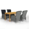 Δημιουργήστε μία εντυπωσιακή και συνεκτική διακόσμηση στον εξωτερικό χώρο σας με αυτό το σετ τραπεζαρίας κήπου! Το τραπέζι είναι κατασκευασμένο από μασίφ ξύλο ακακίας με φινίρισμα λαδιού, το οποίο το καθιστά σταθερό, ανθεκτικό και εύκολο στη συντήρηση. Η καρέκλα εξωτερικού χώρου διαθέτει ατσάλινο σκελετό με ηλεκτροστατική βαφή πούδρας και καλύπτεται από στρογγυλό ρατάν πολυαιθυλενίου. Ως αποτέλεσμα, είναι στιβαρή και εύκολη στο καθάρισμα. Τα πλούσια επενδεδυμένα μαξιλάρια παρέχουν ενισχυμένη άνεση, ενώ το κάλυμμα του μαξιλαριού διαθέτει φερμουάρ για εύκολη αφαίρεση και πλύσιμο. Η πλάτη είναι ρυθμιζόμενη και προσαρμόζεται στις θέσεις σας, χάρις στον μηχανισμό ανύψωσης με αέριο. Χρησιμοποιώντας το κουμπί που βρίσκεται στο πλάι, μπορείτε να ρυθμίζετε την πλάτη προς τα πίσω. Επιπλέον, η καρέκλα κήπου είναι ελαφριά και εύκολη στη μετακίνηση. Σημαντική σημείωση: Συνιστούμε να καλύπτετε το σετ τραπεζαρίας στη βροχή, το χιόνι και τον παγετό, για να διατηρηθεί η καλή λειτουργία του.Αίγινα, Πόρος, Ύδρα, Σπέτσες, Κρήτη, Χίος, Σάμος, Κυκλάδες Ρόδος και Δωδεκάνησα. Παρακαλούμε σημειώστε: δεν αποστέλλουμε στις αναφερόμενες τοποθεσίες. Δεν είναι δυνατή η επιπρόσθετη χρέωση για αποστολή σε αυτές τις τοποθεσίες.