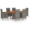 Δημιουργήστε μία εντυπωσιακή και συνεκτική διακόσμηση στον εξωτερικό χώρο σας με αυτό το σετ τραπεζαρίας κήπου! Η τραπεζαρία είναι στιβαρή και σταθερή λόγω της κατασκευής της από μασίφ ξύλο ακακίας. Η επιφάνεια με φινίρισμα λαδιού την καθιστά κατάλληλη για χρήση σε εξωτερικούς χώρους. Διαθέτοντας σκελετό από ατσάλι με επικάλυψη από ρατάν πολυαιθυλενίου με αντίσταση στα καιρικά φαινόμενα, οι καρέκλες τραπεζαρίας είναι στιβαρές και καθαρίζονται εύκολα. Τα μπράτσα διαθέτουν εντυπωσιακή κατασκευή από μασίφ ξύλο ακακίας, χαρίζοντας μία ρουστίκ πινελιά. Τραβώντας το κουμπί στο πλάι, μπορείτε να αναδιπλώσετε την πλάτη. Τα πλούσια επενδεδυμένα μαξιλάρια προσθέτουν επιπλέον άνεση όταν κάθεστε. Σημείωση: Προκειμένου να παραταθεί η διάρκεια ζωής των επίπλων εξωτερικού χώρου, σας συνιστούμε να τα καθαρίζετε τακτικά και να μην τα αφήνετε σε εξωτερικούς χώρους ασκόπως χωρίς προστασία.Καθαρισμός: Χρησιμοποιήστε ένα ήπιο διάλυμα σαπουνιού.Αποθήκευση: Εάν είναι δυνατόν, αποθηκεύστε σε δροσερό, ξηρό μέρος σε εσωτερικούς χώρους. Εάν το προϊόν είναι αποθηκευμένο σε εξωτερικούς χώρους, προστατέψτε το με αδιάβροχο κάλυμμα. Σκουπίστε και στεγνώστε το περισσευούμενο νερό ή χιόνι από επίπεδες επιφάνειες έπειτα από βροχή ή χιονόπτωση. Επιτρέψτε επαρκή κυκλοφορία αέρα για την αποφυγή των ζημιών που σχετίζονται με την υγρασία.Αίγινα, Πόρος, Ύδρα, Σπέτσες, Κρήτη, Χίος, Σάμος, Κυκλάδες Ρόδος και Δωδεκάνησα. Παρακαλούμε σημειώστε: δεν αποστέλλουμε στις αναφερόμενες τοποθεσίες. Δεν είναι δυνατή η επιπρόσθετη χρέωση για αποστολή σε αυτές τις τοποθεσίες.