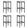 Σκαμπό Κήπου VidaXL με Μαξιλάρια από Ρατάν 4 Τμχ - Μαύρο/Κρεμ