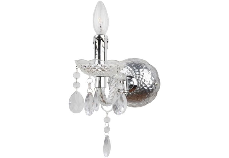 Απλίκα της εταιρείας Aca Decor με vintage στυλ σε ασημί απόχρωση και διάφανο ακρυλικό υλικό. Φέρει διακοσμητικά διαφανή κρυσταλλάκια. Διαθέτει θέση για 1 λαμπτήρα ο οποίος δεν συμπεριλαμβάνεται. Δώσε στο χώρο σου ένα μοναδικό φωτισμό και στυλ που θα τραβάει όλα τα βλέμματα.